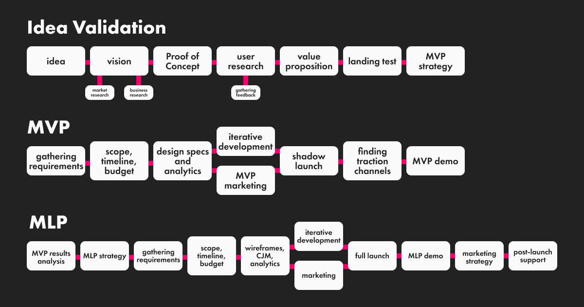 Creating an MLP is similar to creating an MVP in that both involve identifying and addressing the core needs of the customer. However, while an MVP focuses on providing the bare minimum functionality to solve a specific problem, an MLP goes a step further by also incorporating elements that engage the customer. Additionally, while an MVP is used as a way to test the market and validate an idea, an MLP is more about building a long-term, successful product that has a loyal customer base.